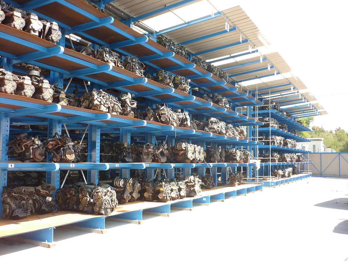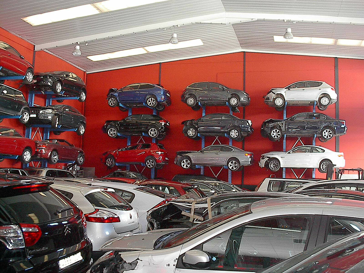 Raktározási lehetőség 18 gépjármű számára. Azonos számú elhasználódott jármű tárolása a robusztus karos állványokrévén csak 48 nm alapterületet igényel. Minden jármű közvetlenül hozzáférhető.