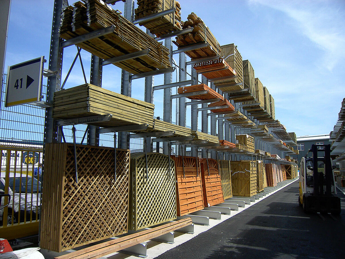 Sokféle árutípus, például lécek, profilok, rudak vagy csövek esetében a függőleges állvány jelenti a tökéletes és vevőbarát tárolási módot. A különböző típusok és méretek osztályozva és elérhető módon mutathatók be a raktárban vagy az értékesítő helyiségben.