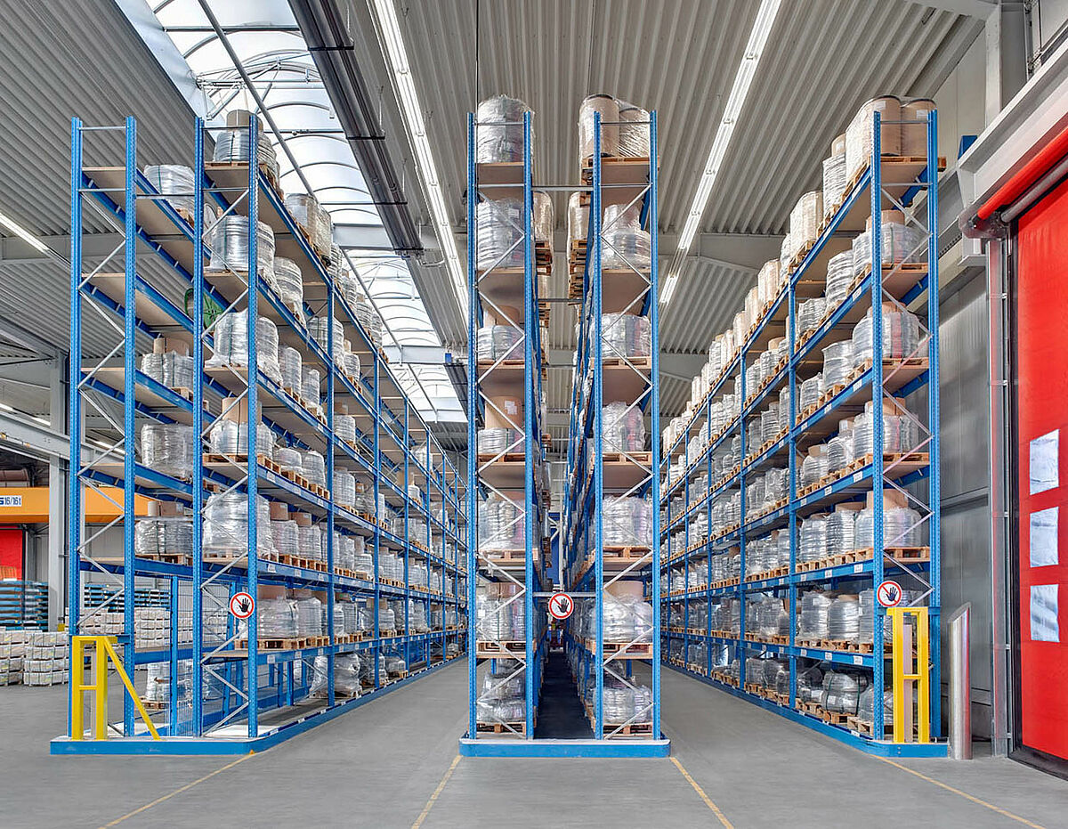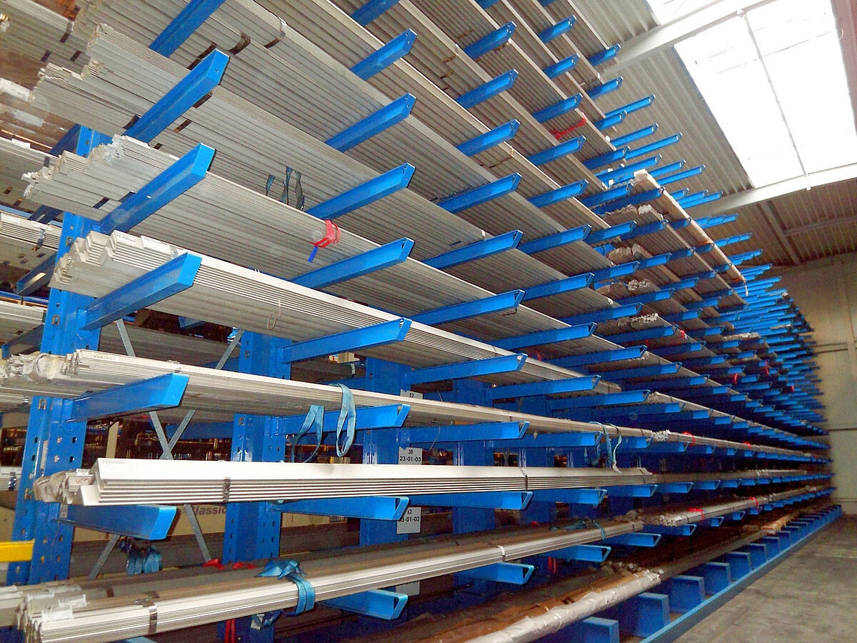 A megoldás egy 7,50 m magas, az 1.250 mm hosszúságú konzolonként 1.200 kg teherbírású, egymás fölött 14 raksíkkal rendelkező konzolos polcrendszer volt