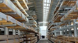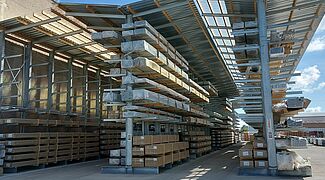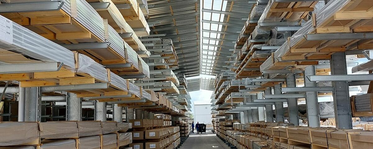 Az ALBIXON végül az OHRA állványrendszereiben találta meg az igényeire szabott raktári megoldást: A három sorban elhelyezett 7300 mm-es karos állványok maximálisan kihasználják a rendelkezésre álló helyet. A karos állványok mindegyike 500 kg teherbírású. Az állványok fölött részben átlátszó PVC-vel borított tető húzódik végig, amely a padló közelében is megfelelő fényt biztosít.