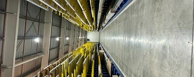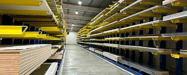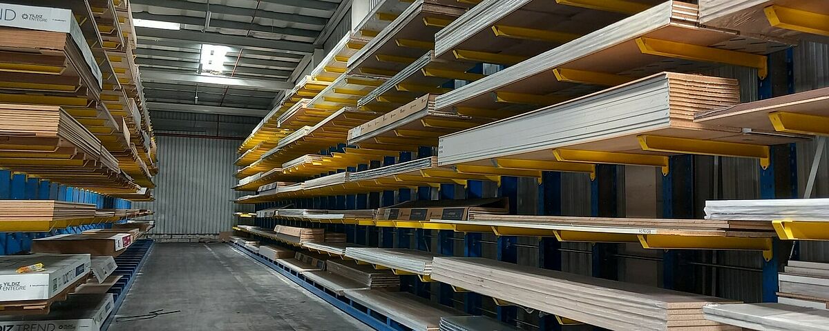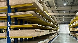 Ezért az Arabesque úgy döntött, hogy több sor OHRA karos állvánnyal váltja le a padlótárolót. Az állványok legnagyobb magassága akár 5280 milliméter, az 1200 milliméteres karok akár 850 kilogrammig terhelhetők. Minden állványt vezetősínekkel szereltek fel, így a közlekedőfolyosókhoz szükséges hely kicsi marad, a négyutas targonca azonban könnyen mozoghat bennük.