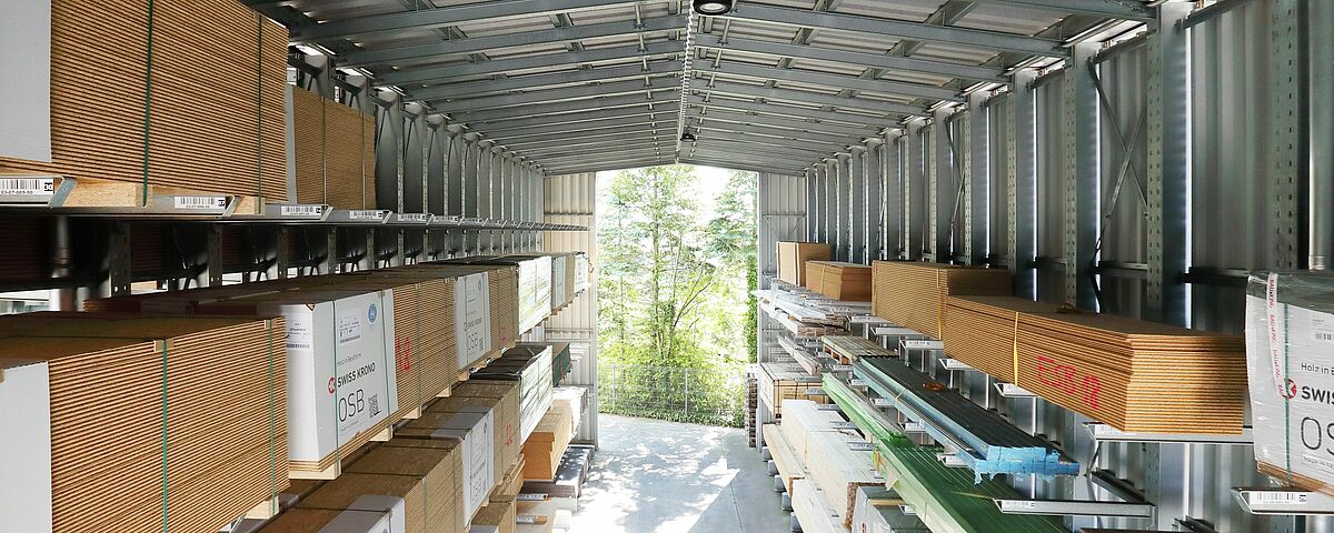 A faipari termékek tárolására szolgáló új állványcsarnok jelentősen hatékonyabb logisztikai folyamatokat tesz lehetővé a BAUKING lorupi telephelyén. Az ügyfelek nagyobb termékválasztékhoz férnek hozzá, így most már pl. akár 13 méter hosszú termékek is gond nélkül tárolhatók. Az ügyfelek hamarabb hozzájuthatnak a kiválasztott árucikkekhez, mivel valamennyi faipari termék egy központi, karos állványrendszeren kap helyet.