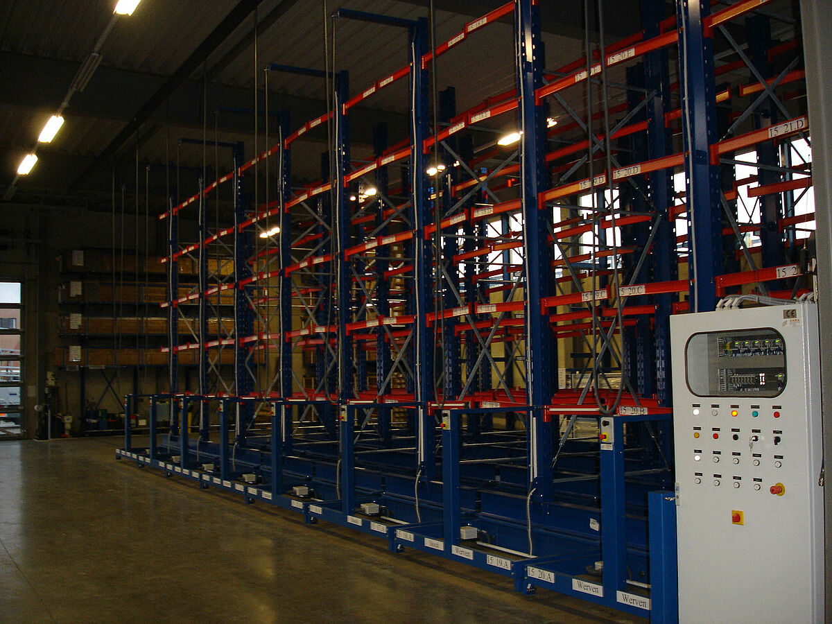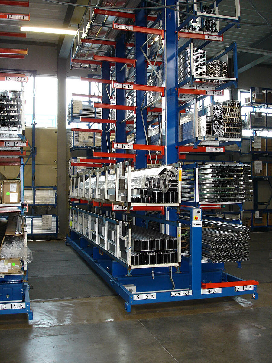 A már meglévő konzolos polcok, amelyek a csarnokfalnál álltak, rövidesen teljesen megteltek és ezért szükségessé vált a tárolási kapacitás növelése. A raktárcsarnok alapterülete 9x23 méter. Mivel az egyes profilok kézzel választhatók ki, az jelentette kihívást, hogy a relatív csekély polcmagasság ellenére nagy rakfelületet teremtsünk. Egy további feltétel az volt, hogy a meglévő fali polcok továbbra is használhatóak legyenek.