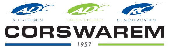 A Corswarem NV önálló családi vállalkozás, kb. 40 munkatárssal többek között alumíniumból készült oromfalakat és ablakokokat szerel nagy projektek keretén belül.