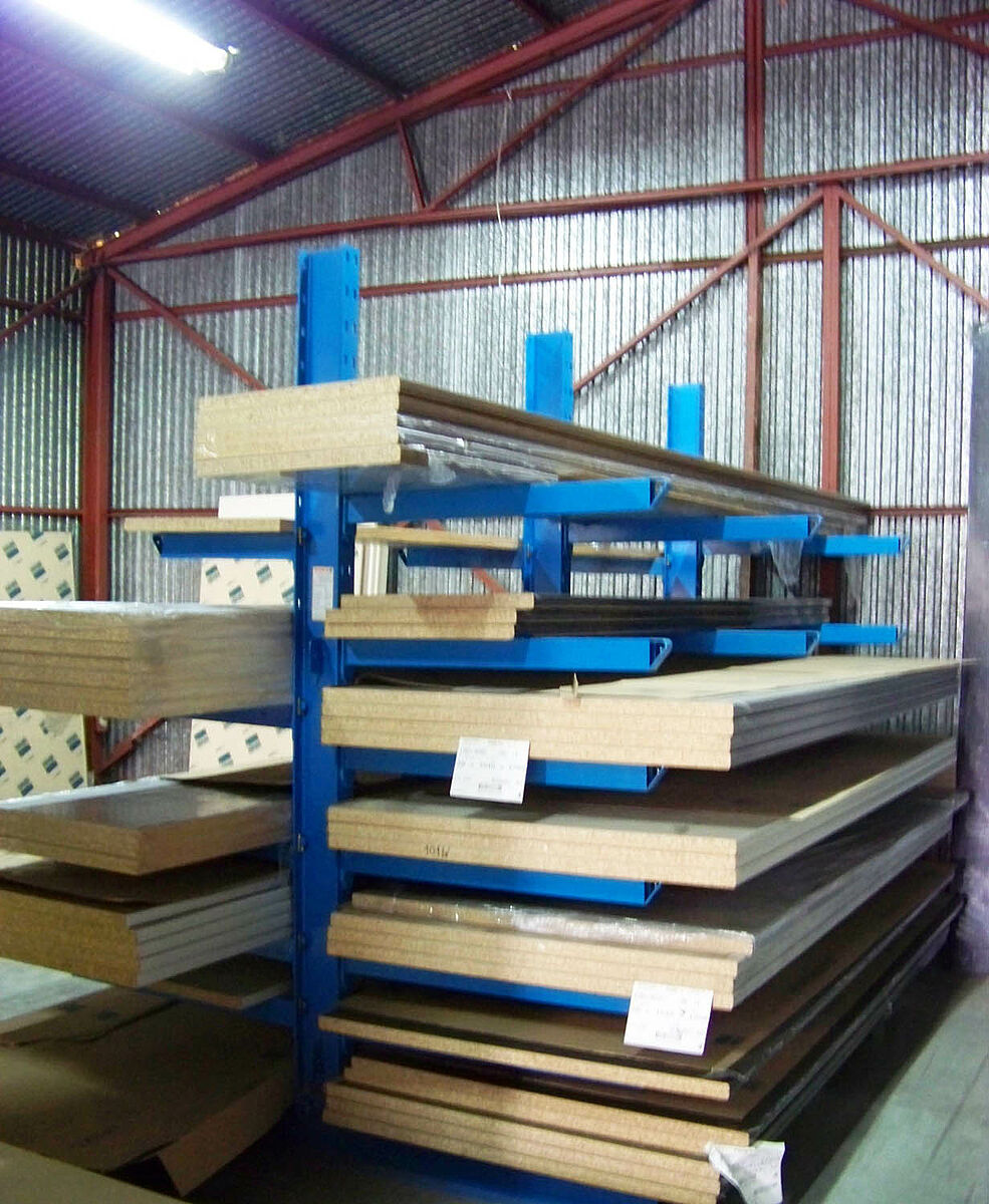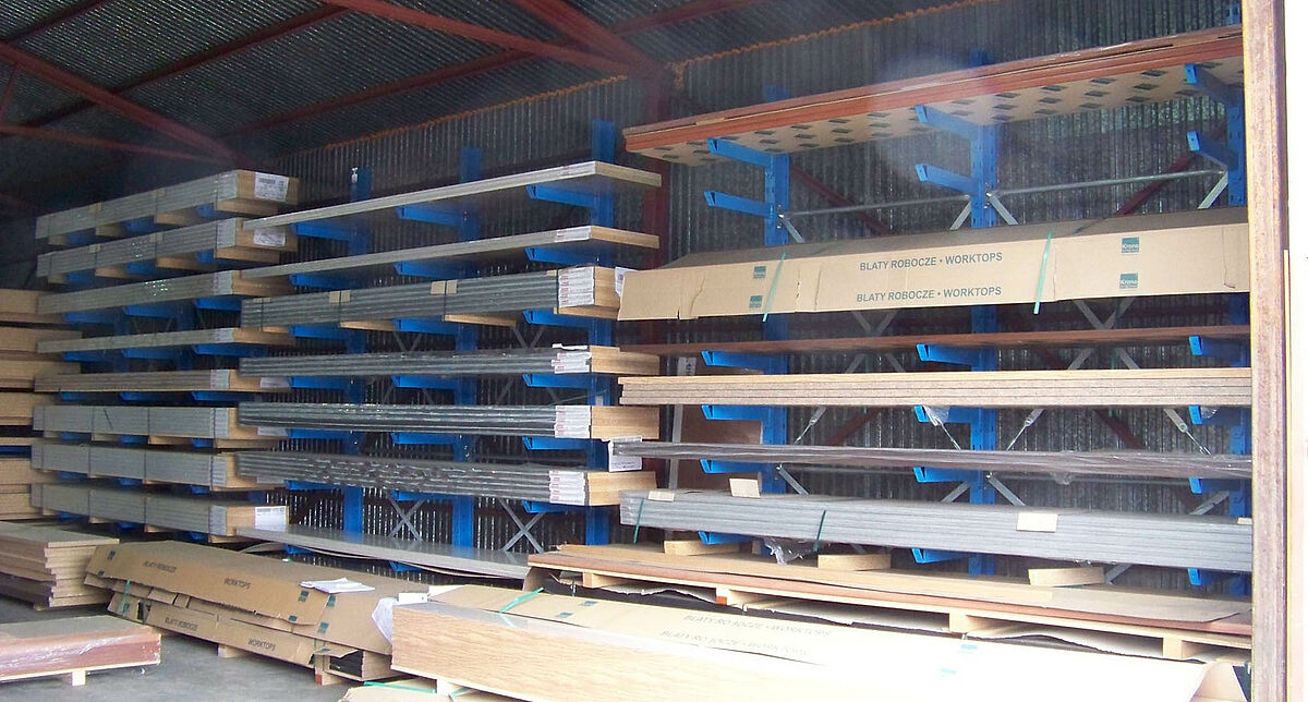 Egy másik raktárban találhatók a 600 milliméter mély munkalapok, amelyek csomagonként 300-400 kilogrammot nyomnak. Ez a raktár OHRA karos állványokkal van felszerelve. Ugyanígy egy negyedik raktár az asztalos műhelyt szolgálja ki. Itt találhatóak többek között az akátr1200 kg súlyú OSB-lap csomagok. Az OHRA karos állványai mindeközben magasabb rugalmasságot kínálnak, mert a konzolok variálható módon akaszthatók be a polcállványokba. Ez azt jelenti, hogy a Damar munkatársai a raksíkok magasságát gyorsan változtathatják - teljesen szerszám nélkül.