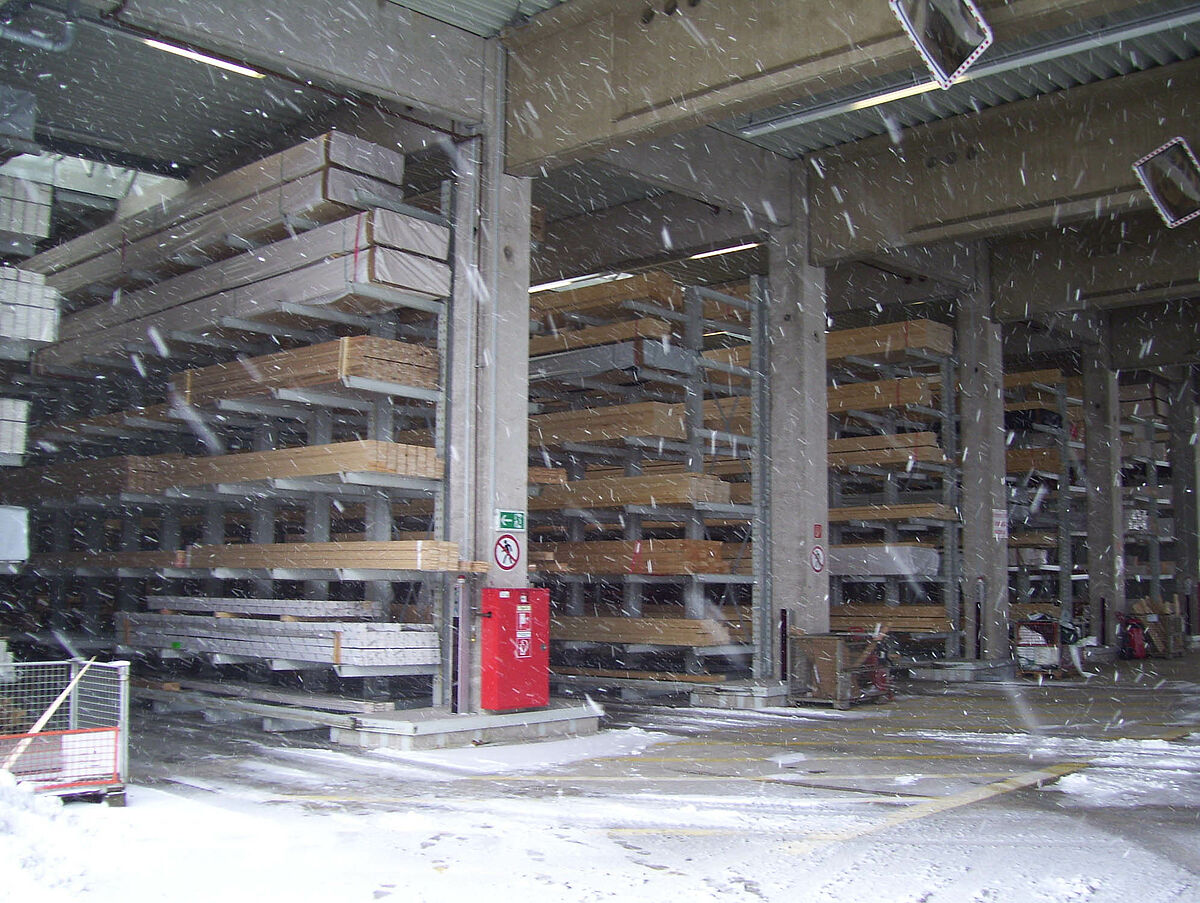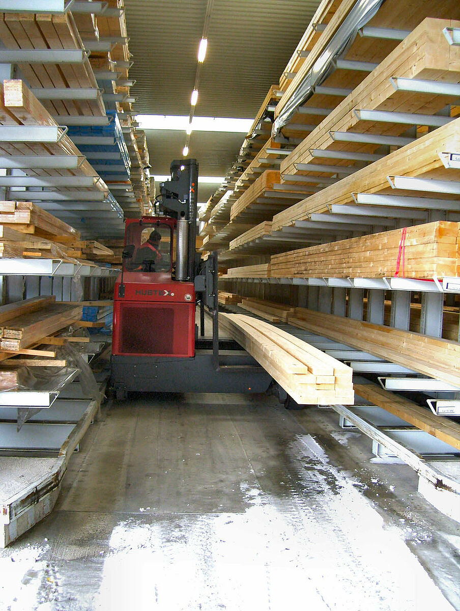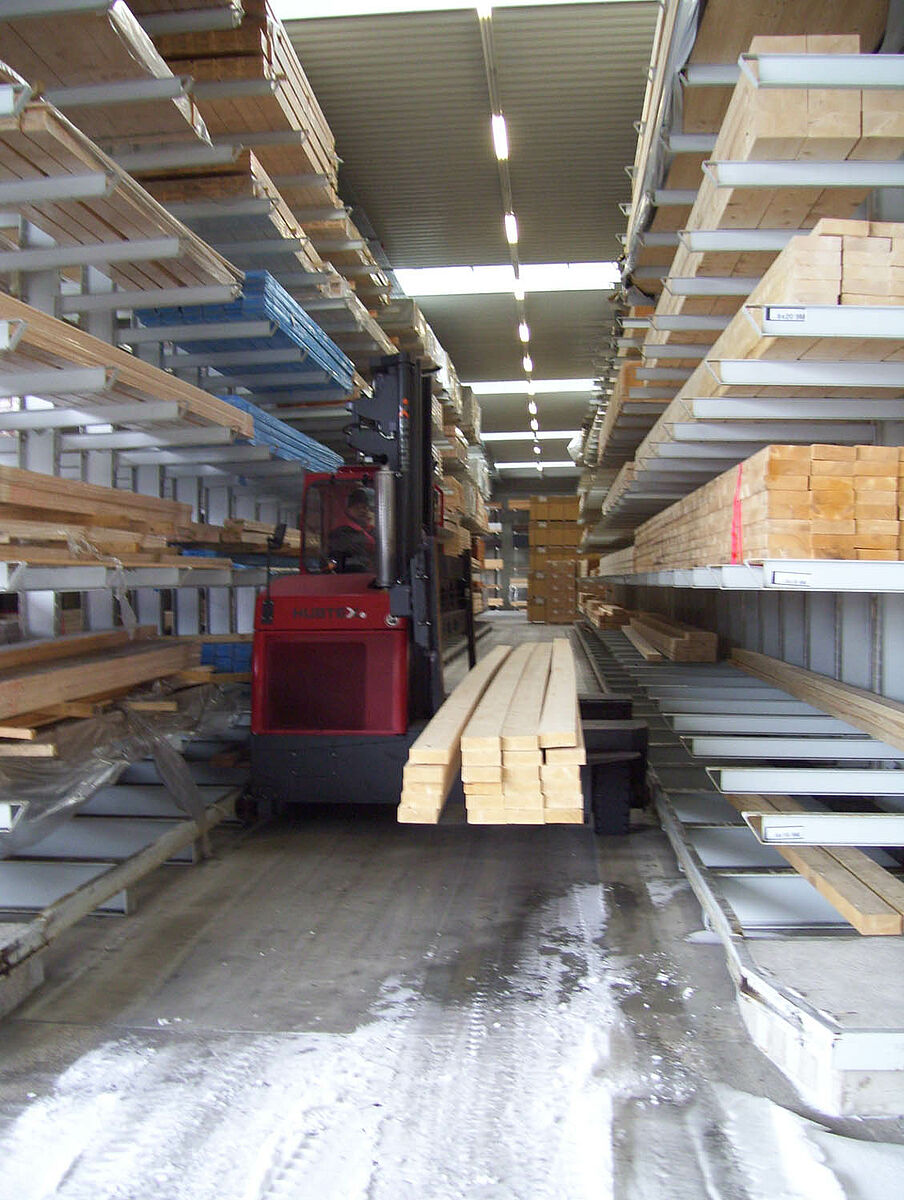 Mindössze két hét alatt a kerpeni szakemberek a 40 és 50 méter hosszú és 6,2 méter magas konzolos állványsorokba 236 raktárhelyet integráltak a szerkezeti faanyag és lécanyag számára. A szálanyagok tárolása összesen 2.800 tárolószint folyóméteren lett megoldva. Kiegészítésként a raklapos és karos állványokon 300 raklaphely keletkezett, amelyekben raklapos áruk és alapanyag tárolható. A raktárban kettő Hubtex oldaltargonca és egy Linde homlokvillás targonca használható. Egyedül a használatba vételt követő első hat hónapban már 3.300 köbméter fa került áthelyezésre.