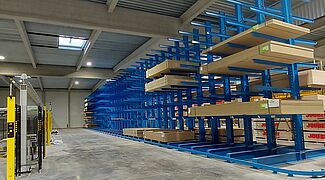 A Derrey építőanyag kereskedő csoport új metzi „Gedibois Derrey” telepét az OHRA karos állványaival szerelte fel. Az egyedi speciális megoldásoknak köszönhetően az állványok pontosan megfelelnek a termékkínálatnak és a szerkezeti feltételeknek. Így a hagyományos karos állványokon kívül aszimmetrikus állványokat is használnak: Ezek kétoldalas állványok, amelyek a bal és a jobb oldali karok teherbírásban és hosszban is különböznek egymástól. Ily módon számos különféle faanyag és lemez tárolható hatékonyan és helytakarékosan. Ráadásul az állványok egy része nyitott csarnokban található, így az állványsor külső lábai ki vannak téve még az időjárás viszontagságainak is, ezért az OHRA az külső lábakat tűzihorganyzott bevonattal, a többi részt költséghatékonyan porszórt bevonattal látta el.