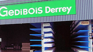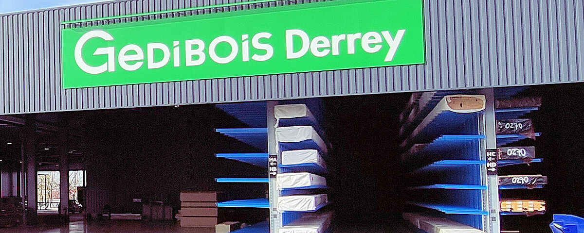 A Gedibois Derrey új telepe fatermékek, pl. fűrészáruk, homlokzatburkolatok, padlóburkolatok széles választékát kínálja mind kereskedelmi ügyfelei, mind magánügyfelei részére. Az új épületben a modern, 1000 m2-es kiállító területen kívül egy mintegy 7000 m2-es raktárterület is helyet kapott. A Gedibois Derrey-nél körülbelül 2500 árucikk van folyamatosan raktáron. A raktár egy része zárt raktárcsarnokban, a másik része részben nyitott épületben található, amelyben ki van alakítva az ügyfelek számára fenntartott Drive-in terület.