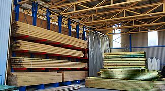 A Farkas-Fa esetében két-két 12,4 méter hosszú konzolos állvány alkotja a falakat. Mivel az OHRA állványok támaszai melegen hengerelt acélprofilokból készülnek, és így nagy teherbírást biztosítanak, nagy fesztávolságok valósíthatók meg a tetőszerkezet esetében: A Farkas-Fa csarnokánál 15 méter a két állványsor közötti távolság. Így később gond nélkül elhelyezhető egy harmadik állványsor a csarnok közepén. A Sarok-Fa viszont oldalfalak nélküli önhordó raktárcsarnok mellett döntött – így a levegő szabadon átfújhat a tárolt fán és kiszáríthatja azt. Három sornyi kétoldalas konzolos állvány szolgál tartószerkezetként. A Sarok-Fa számára az OHRA állványok egyik fontos jellemzője volt, hogy a rugalmasan felfüggesztett konzolok 100 milliméteres raszterben szerszám nélkül áthelyezhetők. Így az állványok bármikor a változó termékkínálathoz igazíthatók.