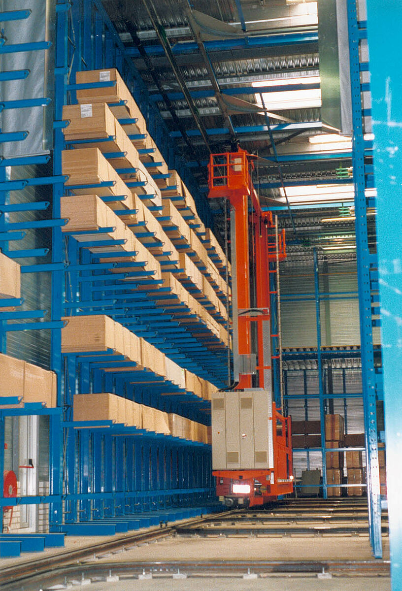 Az új berendezés használatba vétele előtt a tárolás és a termékek árukiszolgálása hét különböző csarnokban történt. 14 munkatárs egyedül csak a raktározással és árukiszolgálássalfoglalkozott. Segédeszközként homlokvillás targoncák szolgáltak.