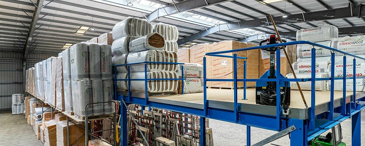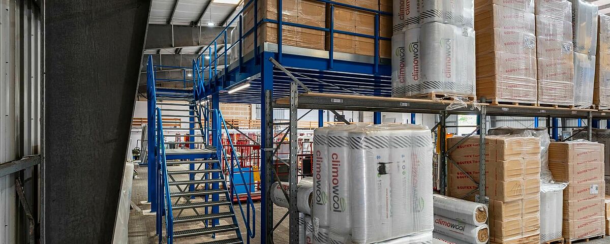 A FRIES családi vállalkozás, Németország egyik vezető fa- és padlóanyag-nagykereskedője, a szó szoros értelmében szintet lépett kieli központjában: Tároló galéria beépítésével a vállalat most már teljes mértékben ki tudja használni meglévő csarnoka belmagasságát. A második szinten, 3,8 m magasan, körülbelül 270 négyzetméteres hasznos felületet alakítottak ki, ahol a szigetelőanyagot tartalmazó nagyméretű raklapokat tömbökben tárolják. A galéria alatti új munkaterület így szükségtelenné tette egy további csarnok megépítését.