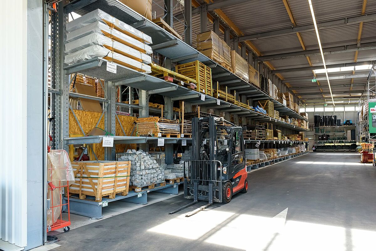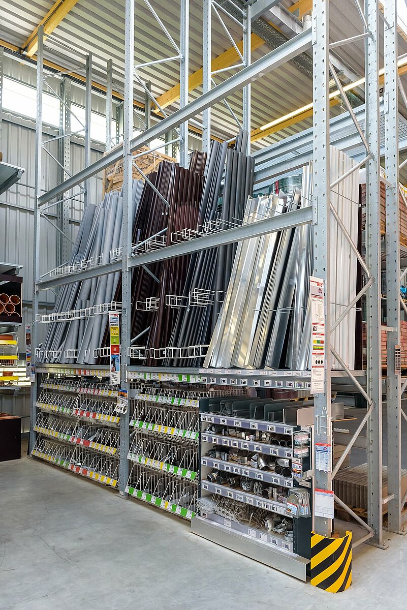 A kertészeti és fából készült cikkek tárolására a Jos. Schneider cég egy akár 48 méter hosszúságban felépíthető karos és raklapos állványokból álló rendszert választott. A legkülönbözőbb áruk karos állványokon történő folyamatos tárolásához minden raktárszint rendelkezik rácsfedéssel is. A teherviselő elemekhez a perforálatlan acélprofilok alkalmazásának köszönhetően az OHRA állványai magas fokú terhelhetőséggel rendelkeznek, ezenkívül pedig az esetleges ütközésekkor rugalmasságuknak köszönhetően nem deformálódnak és tartósan megőrzik statikai tulajdonságaikat. Ennek köszönhetően időtálló alapot biztosítanak a tetőnek és a falaknak.