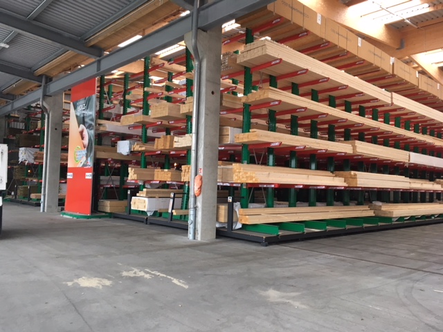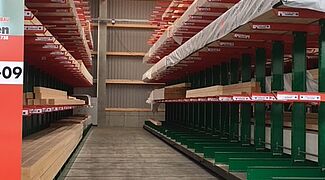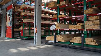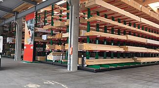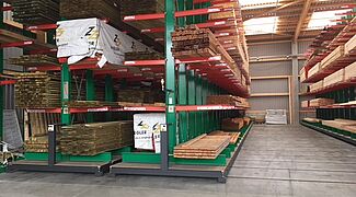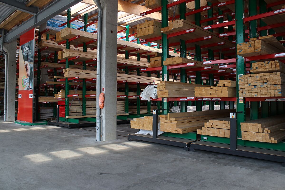 A raktárban az építőanyagokat az építőmesterek és a magánépítészek igényei alapján készletezik. A tárolt árucikkek között különféle építőanyagok, akár 13 méter hosszú faáruk és különböző zsákos áruk vannak. Annak érdekében, hogy az ügyfelek számára a lehető legszélesebb termékválasztékot kínálhassák, a korszerűsítés fókusza a tárolókapacitás növelése volt – az árukat eddig kizárólag a többsoros karos állványokon tárolták.