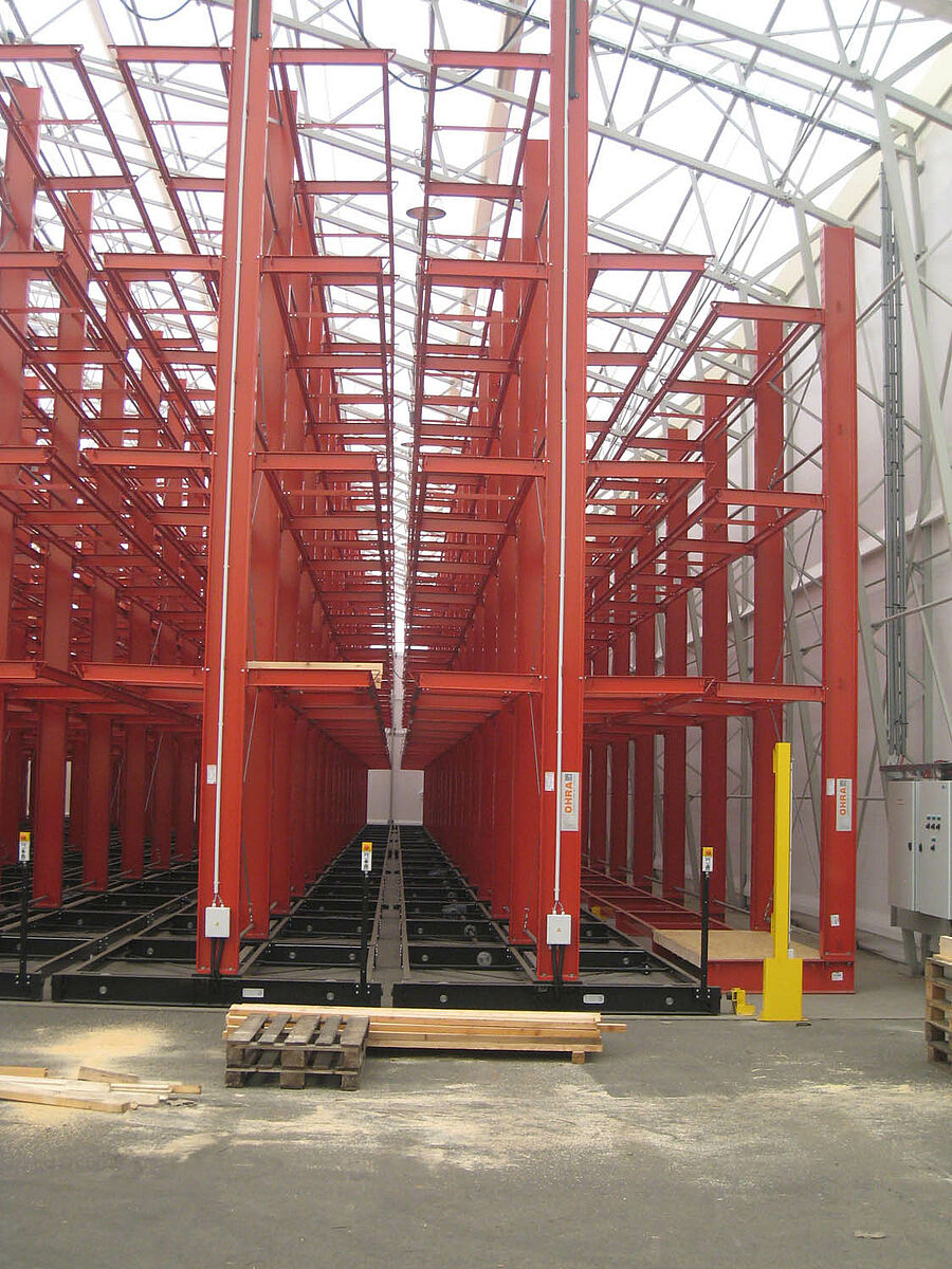 Az M. Hechenblaickner Holzhandelsgesellschaft, Dél-Ausztria piacvezetője az OHRA karos állványainak köszönhetően megduplázta grazi központi raktárának kapacitását. A polcokat ezért szállító kocsikra helyezték - a targonca előtt midig csak az a járat nyílik meg, amelyből az árut ki kell venni.