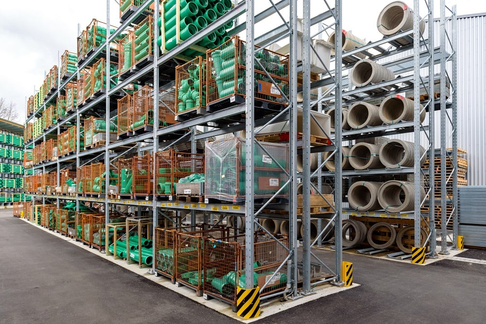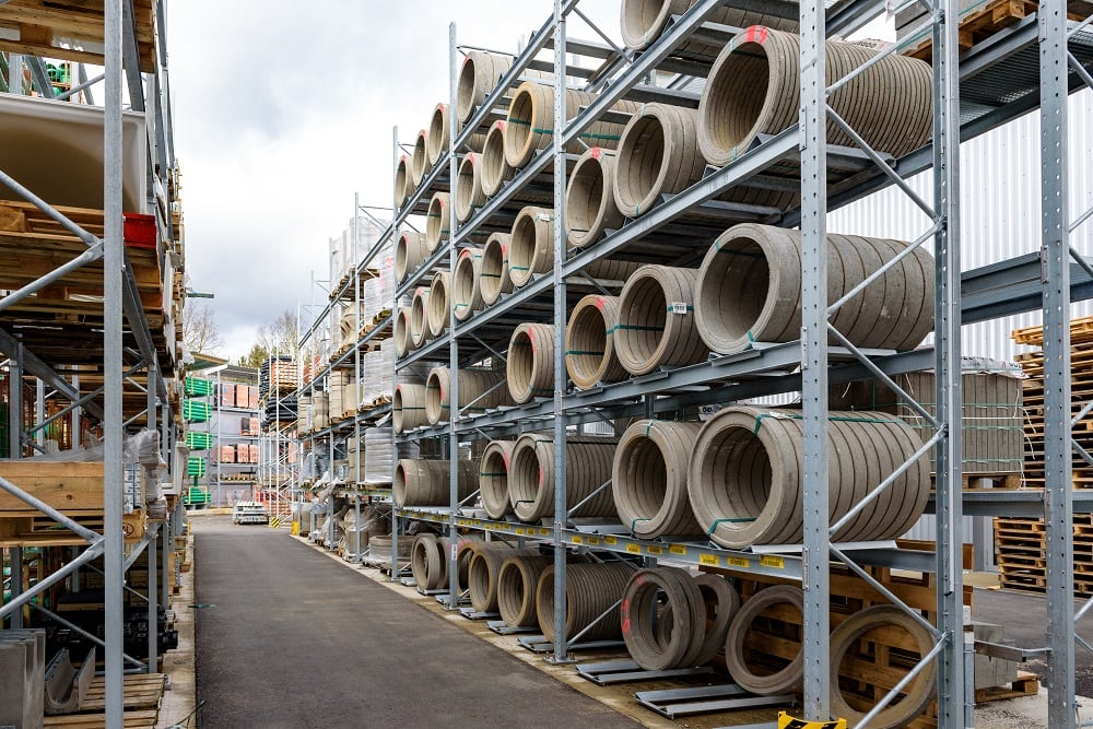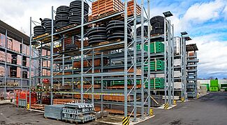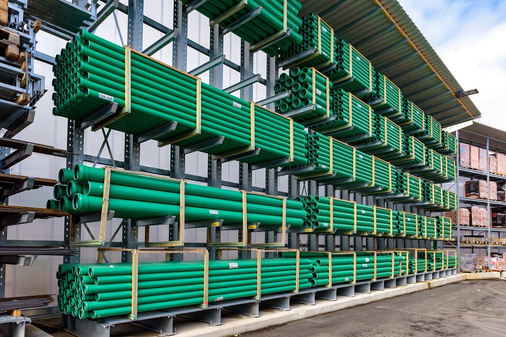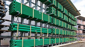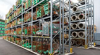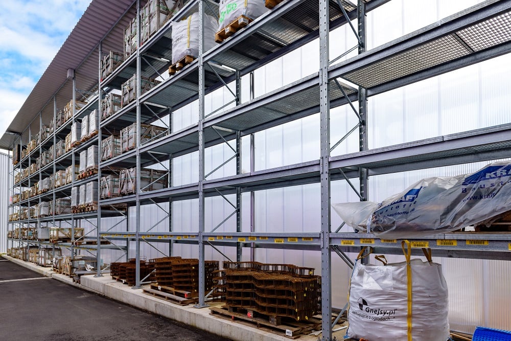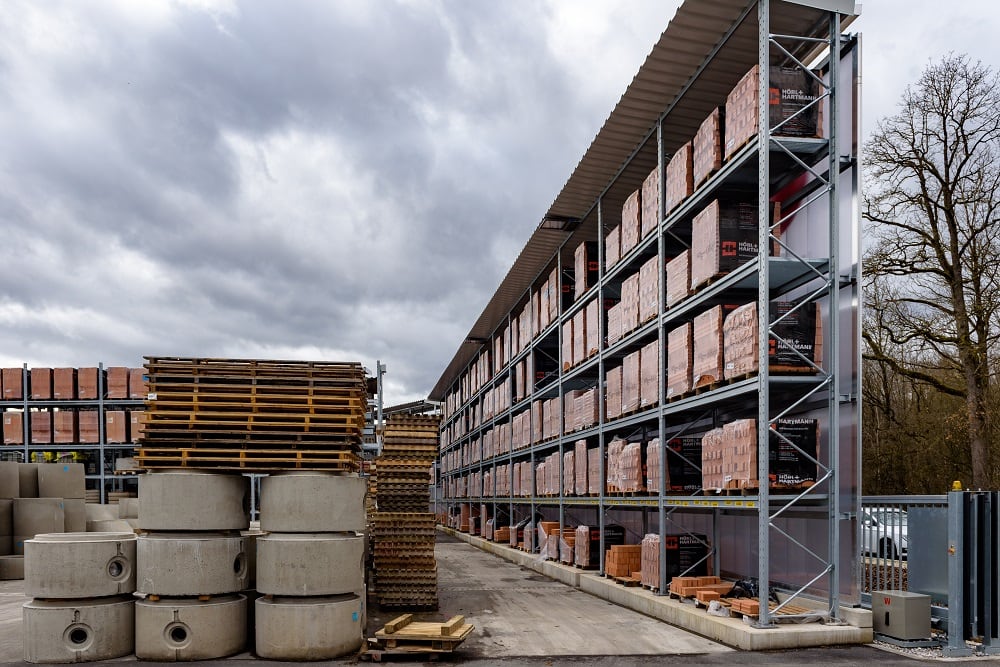 Ezen sokféle különböző anyag tárolásához a Kraft ismét OHRA raklapos és karos állványokkal szerelte fel új külső raktárát. Minőségüknek köszönhetően ezek az állványok már az építőanyag-kereskedők egyéb telephelyein is bizonyítottak. Az OHRA ugyanis kizárólag perforálatlan acélprofilokat használ állványainak tehertartó elemeihez. Ebből adódik az állványok teherbírása és keskeny felépítése, ami kompakt tárolást tesz lehetővé kis alapterületen. A raklapos állványok polcteherbírása akár 4 500 kg, a karos állványok állványai akár 5 000 kg-ig terhelhetők, ez karonként max. 1 000 kg terhet jelent.