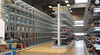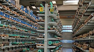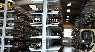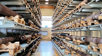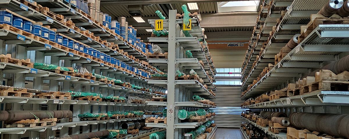 A Reifenhäuser Reiloy ehhez egy 1200 négyzetméteres raktárat létesített, amelyet az OHRA állványaival szerelt fel: a vállalat a nagy teherbírású raktártechnika európai piacvezetője. A robusztus, melegen hengerelt acélprofilból készült karos és raklapos állványok a nagy teherbírást keskeny, helytakarékos kialakítással kombinálják. A Reifenhäuser Reiloy raktárcsarnokában az OHRA öt darab, 20-30 m hosszú állványt telepített, állványonként hét tárolási szinttel. A több mint 5,5 m magas állványok összteherbírása 15 600 kg, valamennyi 800 mm hosszú kar 1300 kg terhet bír. A karos állványok rugalmasan beakaszthatók és bármikor szerszámok nélkül, fokozatosan állíthatók, így a tárolt áruk különböző magasságához igazíthatók. Annak érdekében, hogy a tároláskor és szállításkor ne sérüljenek a tengelyek és a csigák, a Reifenhäuser Reiloy raklapokat használ. Ezért az OHRA a tárolási szinteket rácsos padlózattal alakította ki. Minden padlózat 1600 kg súllyal terhelhető négyzetméterenként. Így akár a legnehezebb munkadarabok is rugalmasan elhelyezhetők az állványokon. Az állványok kezelése egy helytakarékos oldalvillás targoncával történik, az állvány lábaihoz rögzített vezetősínek „vezetik” a targoncát végig a folyosókon.