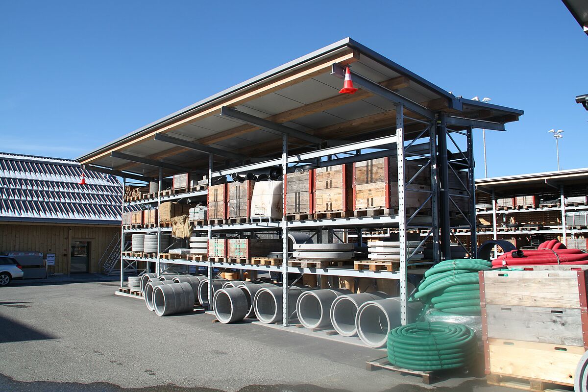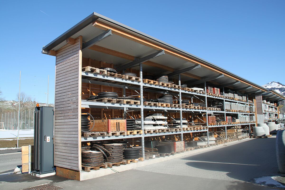 A külső helyszínen felállított raklapos és karos állványokat a raktározott áruk védelme érdekében tető fedi; az OHRA az állványokat megfelelő tetőkarokkal szerelte fel, a tető felállítását pedig egy helyi faipari vállalat biztosította. Így az OHRA az állványok statikáját az Appenzell-ben előforduló akár 484 kg/m2-es hóterheléshez és akár 110 kg/m2-es szélterheléshez igazította.