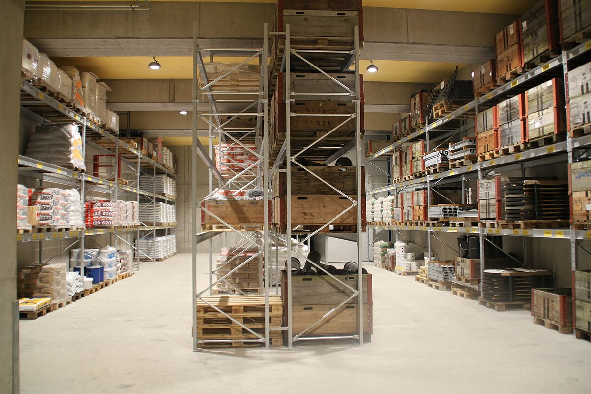 A Röhrenhandel Appenzell cég termékportfóliója mélyépítési, magasépítési, kertészeti és általános beton termékeket foglal magába. Ezen kívül a cég a szakemberek részére szerszámok és munkaruházati cikkek széles választékát kínálja. A különféle árucikkek tárolásához a vállalat az OHRA raklapos és karos állványainak kombinációját választotta, amelyeket részben a csarnokban, részben pedig külső területen helyeztek el. Az új raktár kb. 1000 db euro-raklapnak biztosít elegendő helyet, melyek villás targoncával, valamint magasemelőkkel érhetők el.