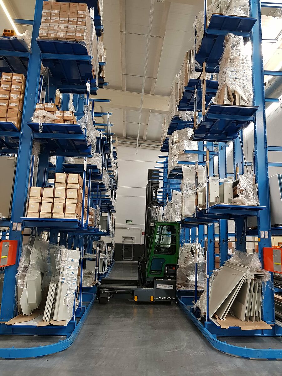A Seuner Fabricados spanyol vállalat az esztergagépalkatrészek tárolására egy új OHRA állványrendszert telepített. Az elsődleges feladat nagy raktárkapacitás létrehozása volt cégspecifikus palettákon elhelyezett, különféle méretű gépalkatrészek tárolására. A feladatot 8,58 m magas karos állványrendszerrel oldották meg, így a folyamatos tárolási szint mellett a a hosszú áruk tárolása is megoldott.