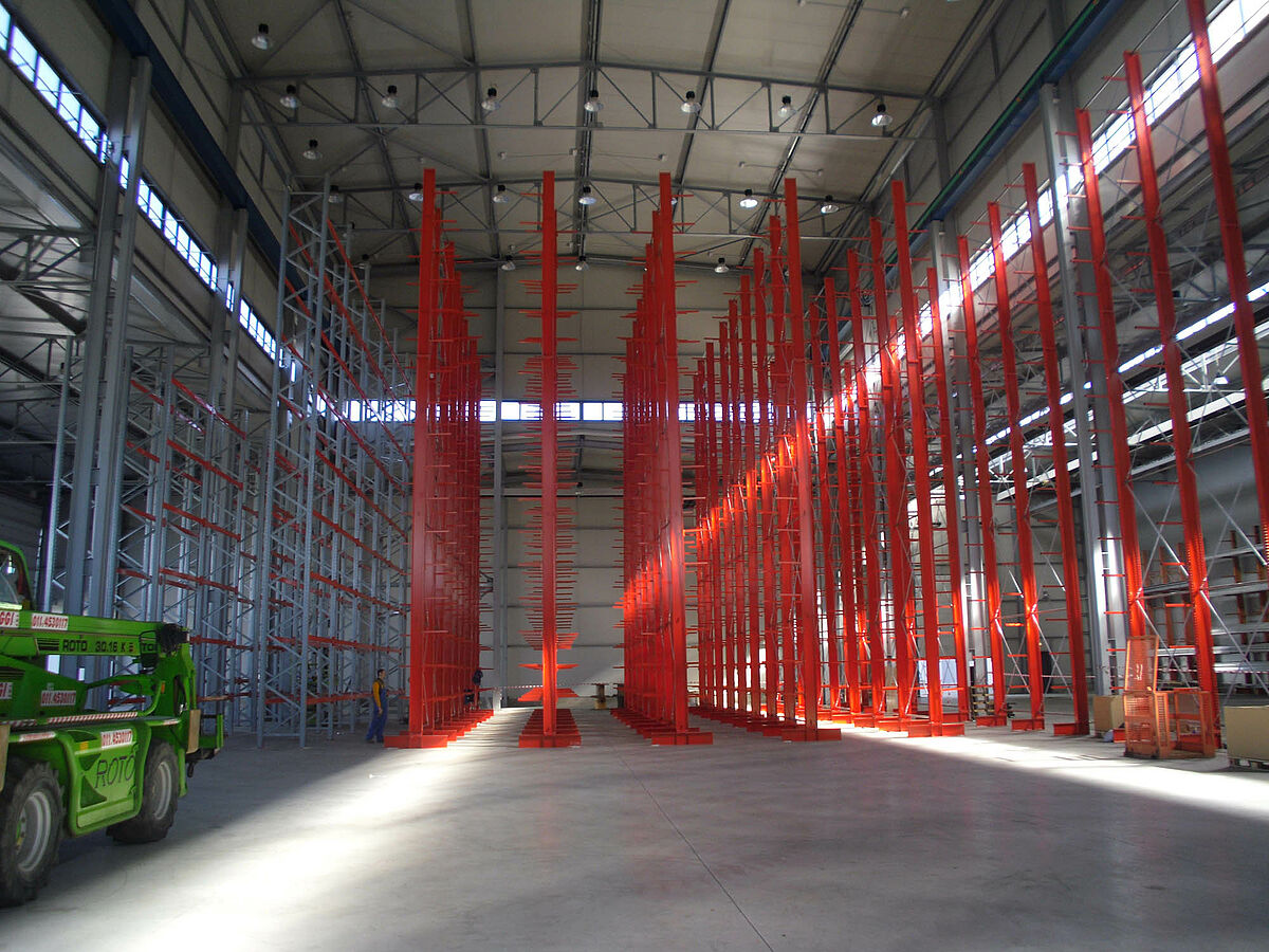 A Sistema az ehhez szükséges polcrendszerek szállításával az OHRA Regalanlagen GmbH-t bízta meg - a németországi kerpeni székhelyű vállalkozás a konzolos polcok gyártásának európai piacvezetője és specialistája. Miután a Sistema a logisztikai feladatokat optimalizálta és a be- és kiraktározás céljára kiválasztott egy teljesen automatikus konzolos berendezést, az OHRA szakemberei optimalizálták a konzolos raktárat a maximálisan elérhető raktárkapacitás tekintetében.