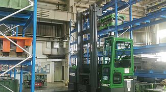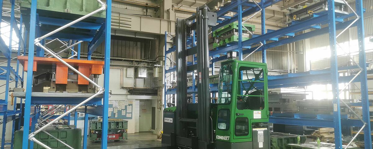 A korábbi, padlón történő tároláshoz képest a Solvaro az új állványrendszer révén jelentősen több mélyhúzó szerszámot tud tárolni a rendelkezésre álló területen. Azonban ennél is fontosabb a szerszámokhoz való közvetlen, gyorsabb hozzáférés: a Combilift speciális, kifejezetten a mélyhúzó szerszámok számára beszerzett villás targonca könnyedén kiemeli a nehéz szerszámokat az állványból, és közvetlenül a préshez szállítja őket. Ezzel egyidejűleg pedig a mélyhúzó szerszámot a megfelelő méretre kialakított állványrendszer megvédi az esetleges károsodástól.