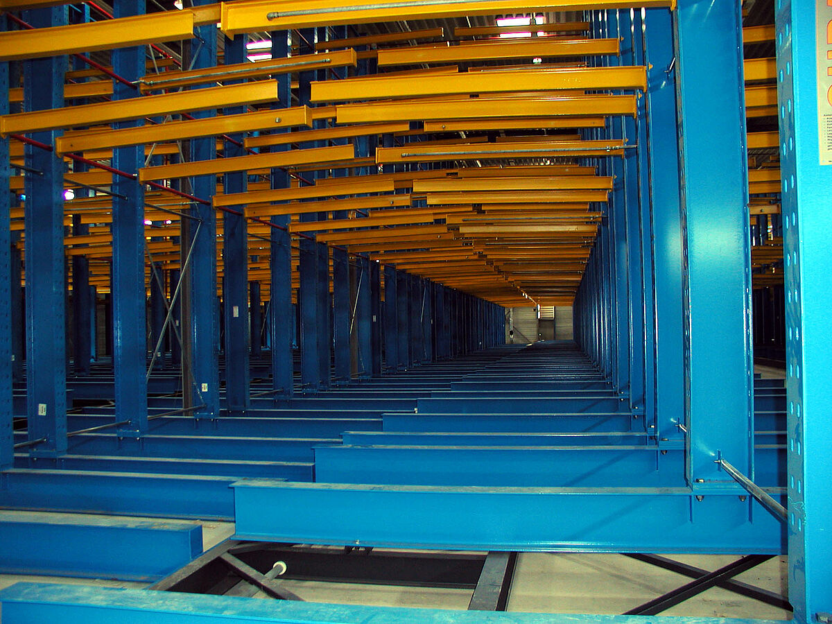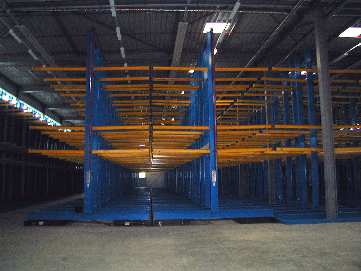 A nagy terjedelem miatt a díszletek különösen nehézkesen tárolhatók annak ellenére, hogy a gyors és kedvező költségű színpadváltáshoz lehetőleg közvetlen hozzáférésre van szükség. A megoldás végül egy mozgó karos polcrendszer. A 2.5 m hosszú karokon nagy lemezek (2,2 x 6 m) kerültek 3 szinten, egyenként 2,1 m szintmagassággal. A Karlsruhe-i Nemzeti Színházban a kétoldalas karos állványokhoz 6 mozgatható alváz került felszerelésre egyenként 60 m hosszúságban. A magas tűzvédelmi követelmények megfelelő a mozgó alvázon elhelyezett tömlőrendszerekkel lett megoldva, Ezt a megoldást használta az OHRA a Zürichi Opera díszletraktárában is.