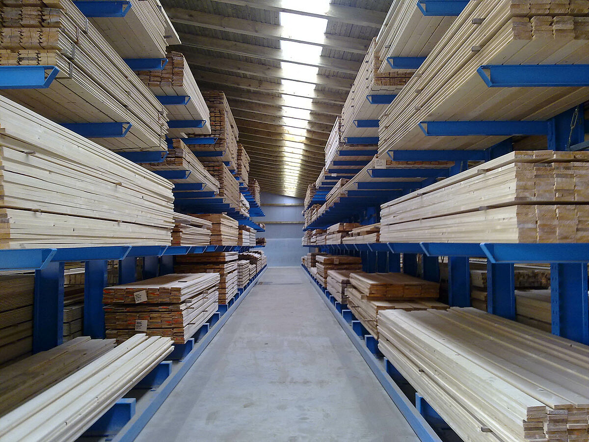 Az új, három járatos, 5,7 m magas raktár összesen akár 1.000 köbméter tárolási kapacitással rendelkezik. A faárukat 4 síkon tárolják. A polcrendszer 1.200 mm hosszú és 1.500 kilogrammal megterhelhető konzolai hajlíthatóan vannak beakasztva és például targoncával történő ütközés esetén kihajlanak. A targoncák alkalmazását ezenkívül a polcoknál lévő vezérsínek is segítik. Ezek lehetővé teszik a ŠVELC-nél a négyutas, kombilifttel felszerelt targoncák alkalmazását.