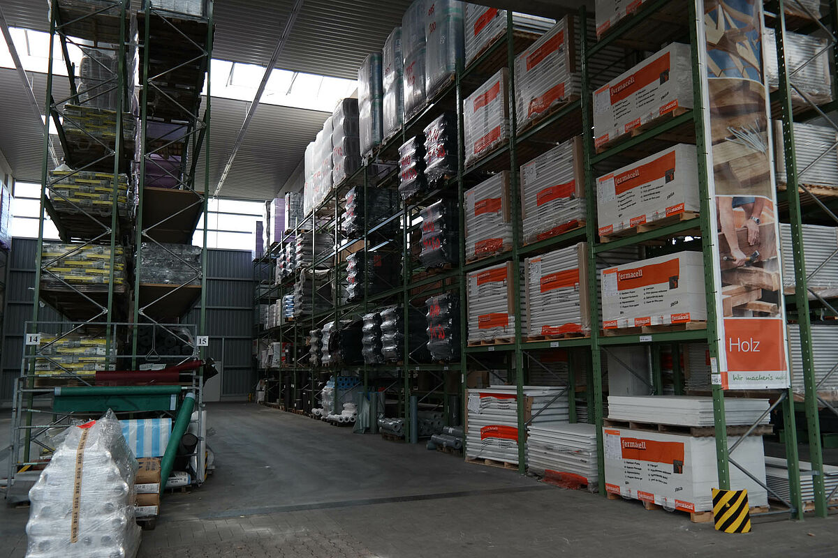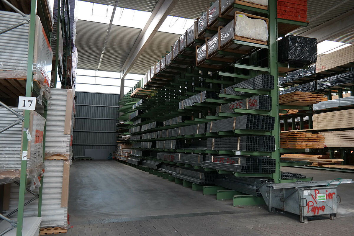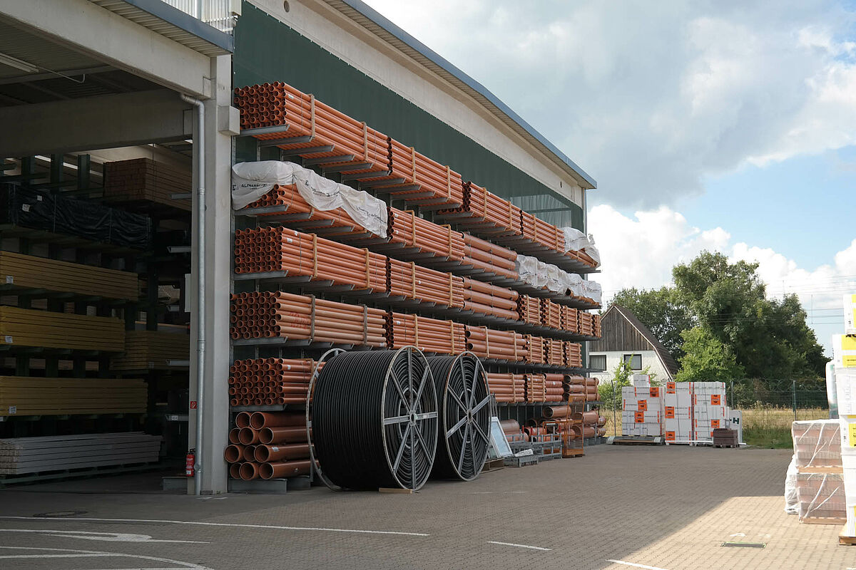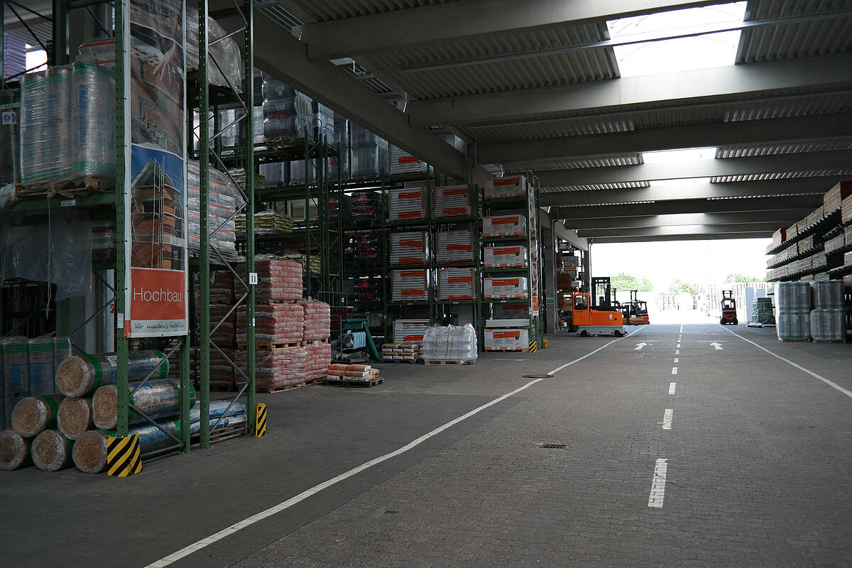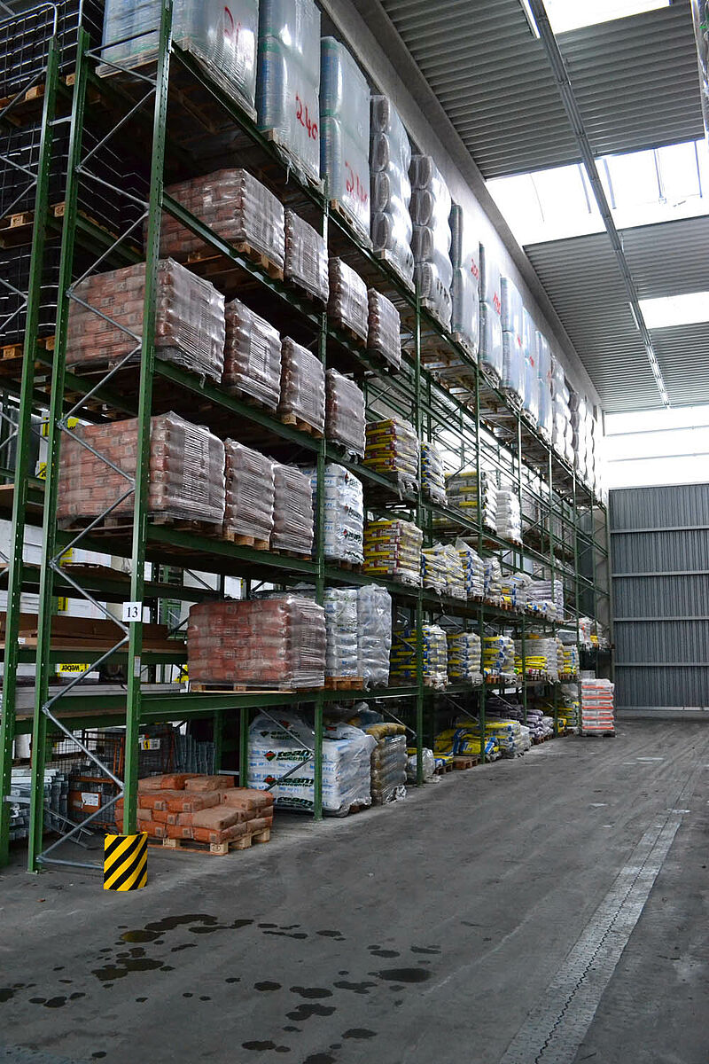 Ezért a team baucenter úgy határozott, hogy a raktározás minőségét egy új raktárcsarnokkal javítja. Ez a kibővült árukészletnek több helyet kínál és lehetővé teszi a teljes készlet összevonását - a rövid utakon történő áruösszeállítás alapja. Az új csarnok felállításával most mindenek előtt több áru tárolható egy helyen és a teherkocsik megrakása és az azokról történő lerakodás az időjárás elől védve történik.
