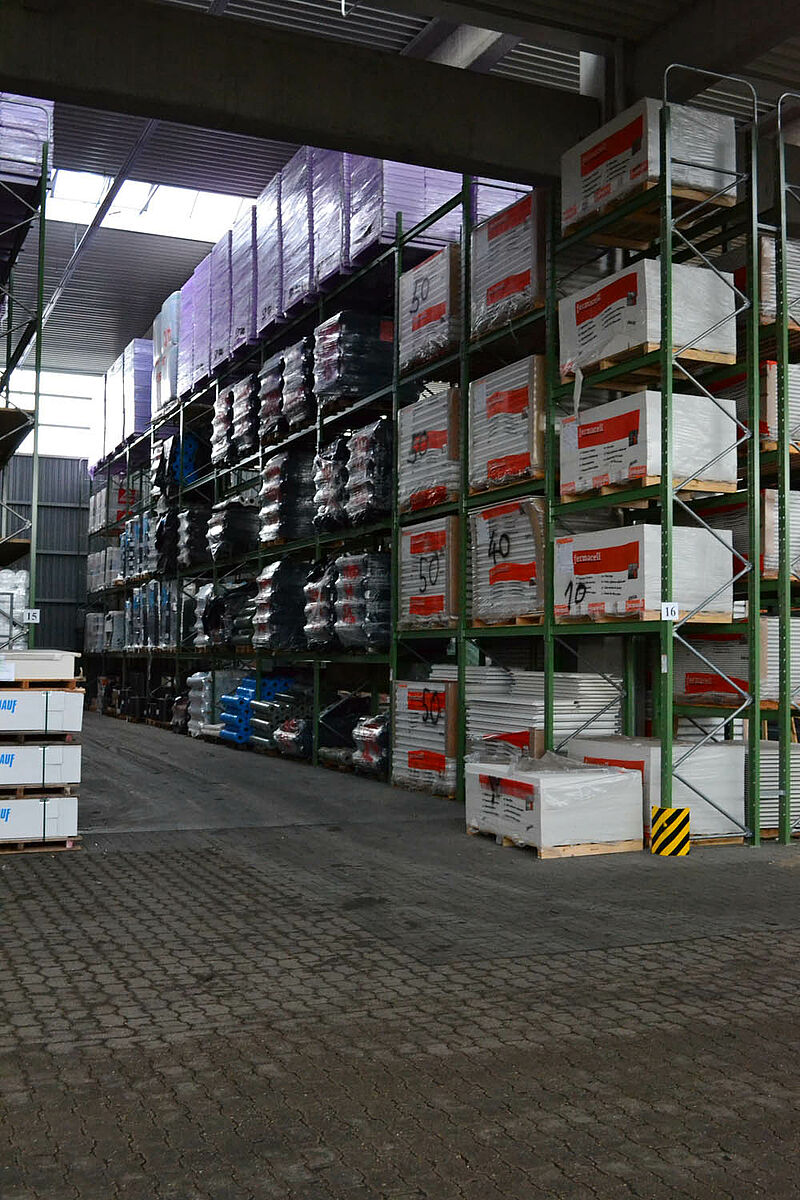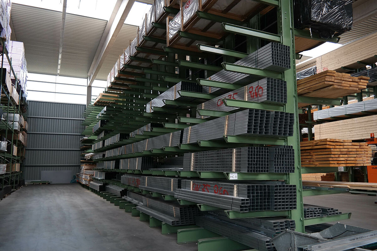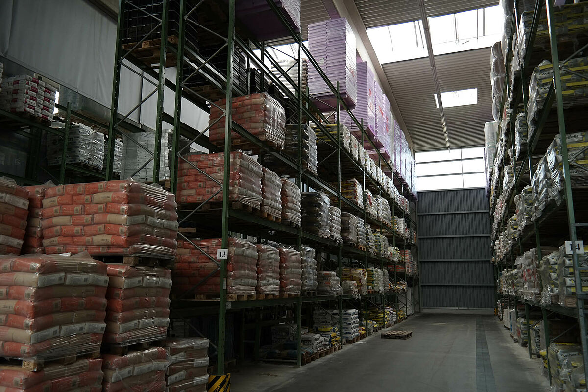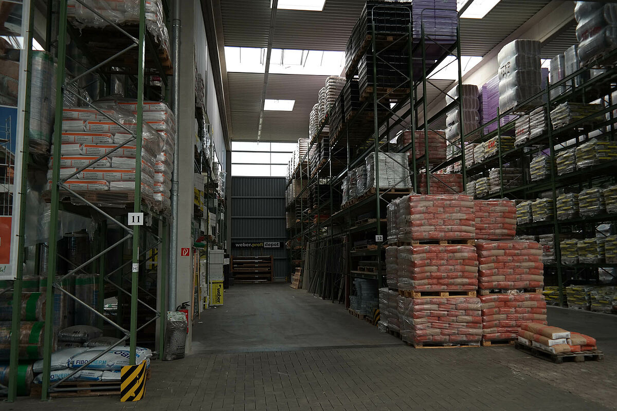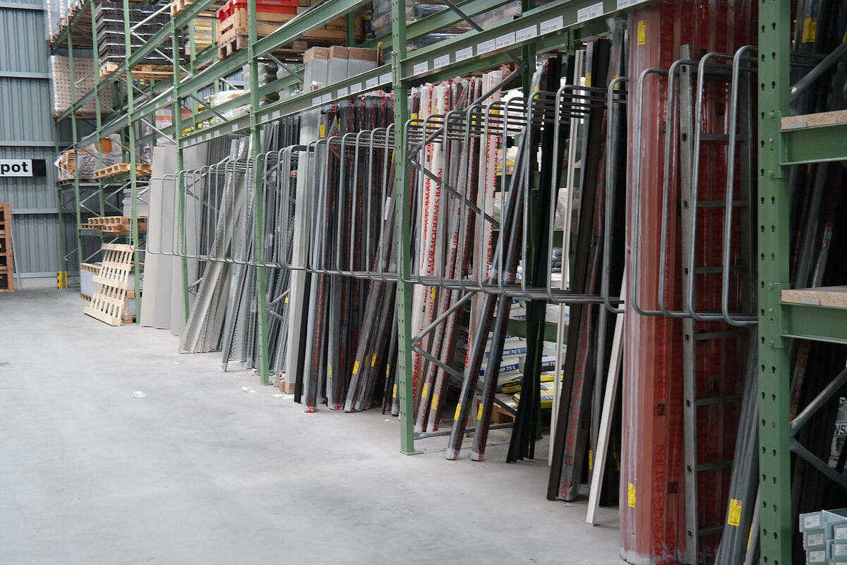 Ezért a team baucenter úgy határozott, hogy a raktározás minőségét egy új raktárcsarnokkal javítja. Ez a kibővült árukészletnek több helyet kínál és lehetővé teszi a teljes készlet összevonását - a rövid utakon történő áruösszeállítás alapja. Az új csarnok felállításával most mindenek előtt több áru tárolható egy helyen és a teherkocsik megrakása és az azokról történő lerakodás az időjárás elől védve történik.