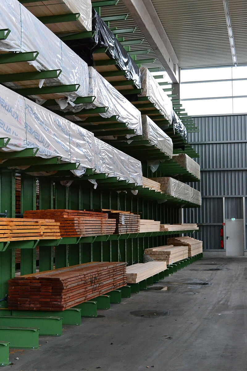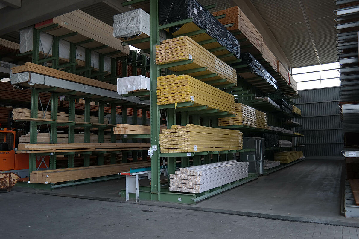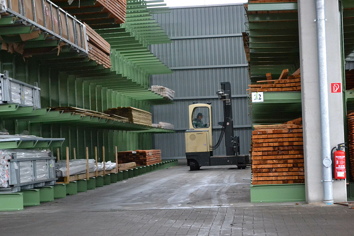 Eddig az építési központ az építőanyagokat egy részben fedett barakkban tárolta. Ezenkívül akár 13 méteres fákat egy kültéri terület polcain tárolták. A fedett raktárkapacitás azonban csekély volt, a fa részben ki volt téve az időjárás viszontagságainak. A blokkban tárolt áruk a mozgatás során újra és újra károsodtak.