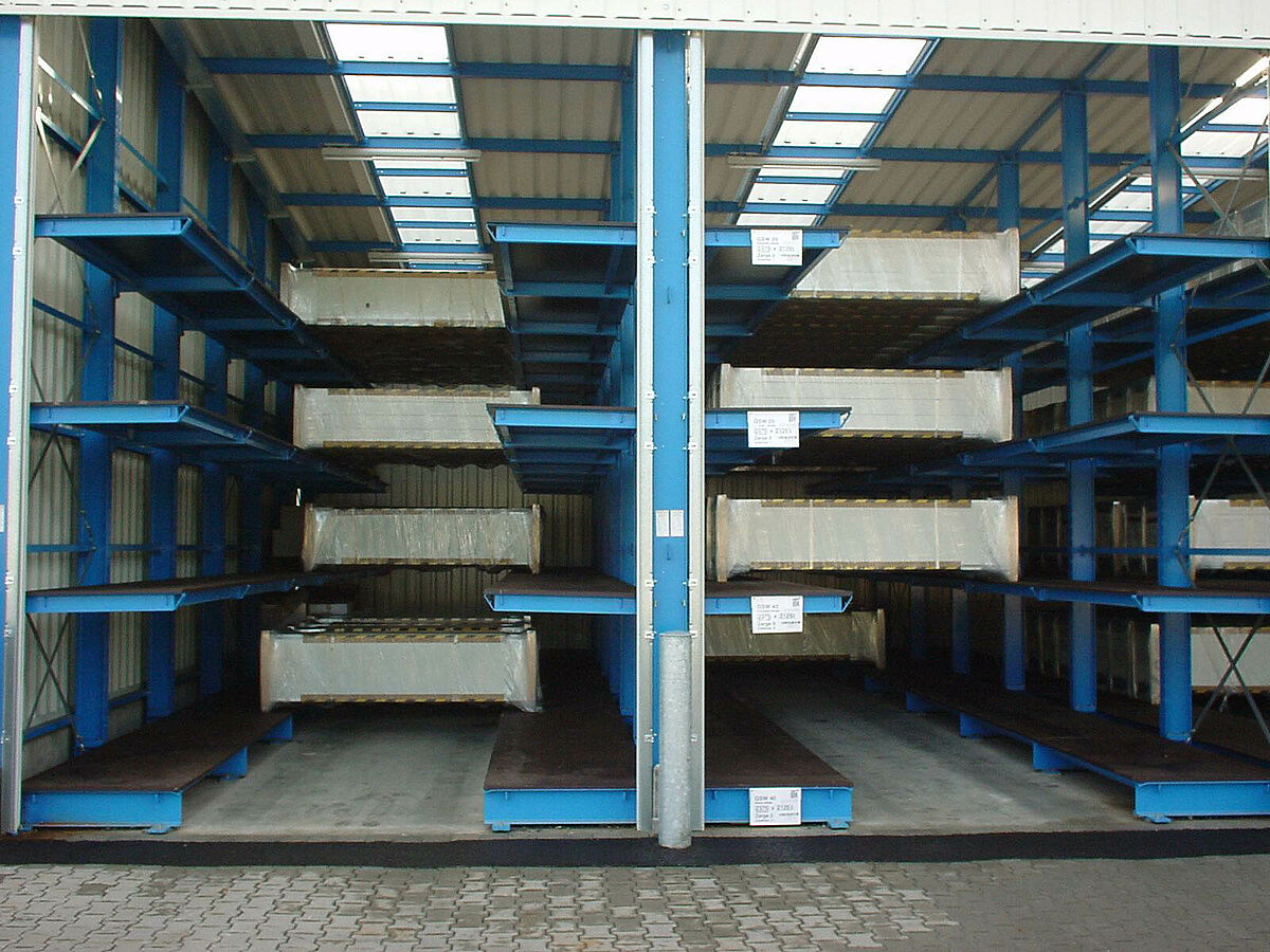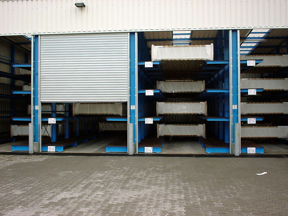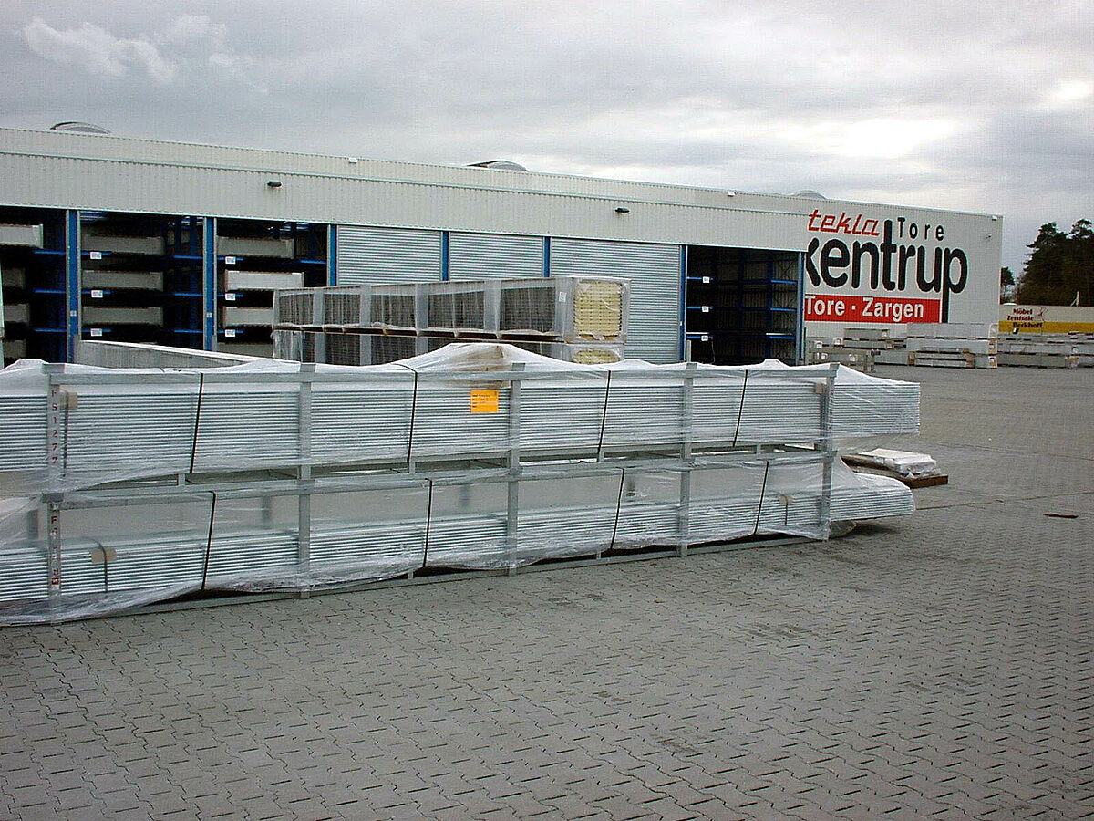 A jelentős eladási sikerek miatt szükségessé vált a készáru raktár bővítése, amelynek során a kis szériák tárolásának különös követelményeit is figyelembe kellett venni. Tervezést érintő megbeszélések egész sora után a karos állványok alapján egy újszerű befogadó állványrendszer került megtervezésre, amely lehetővé teszi a 4,2 m-től 6,5 m-ig terjedő nagyságú kapuk tárolását.