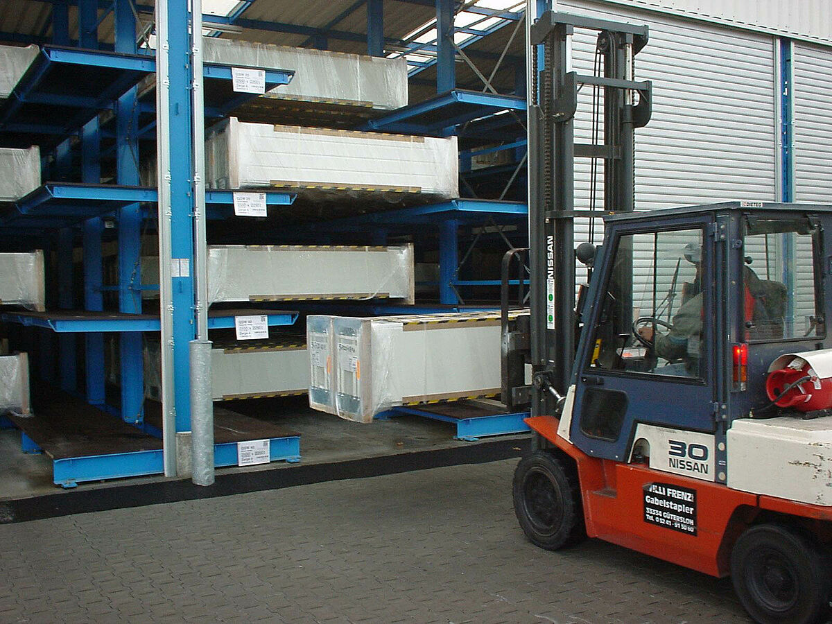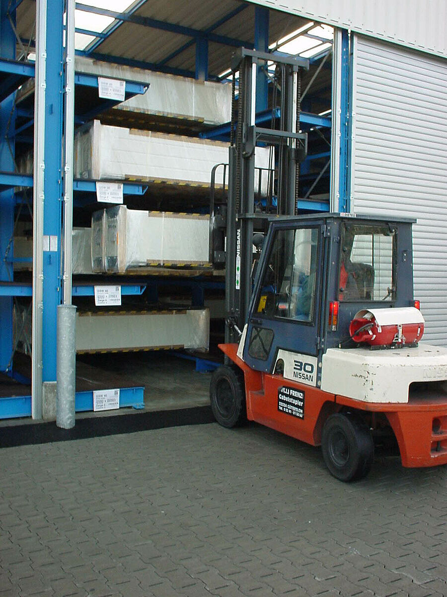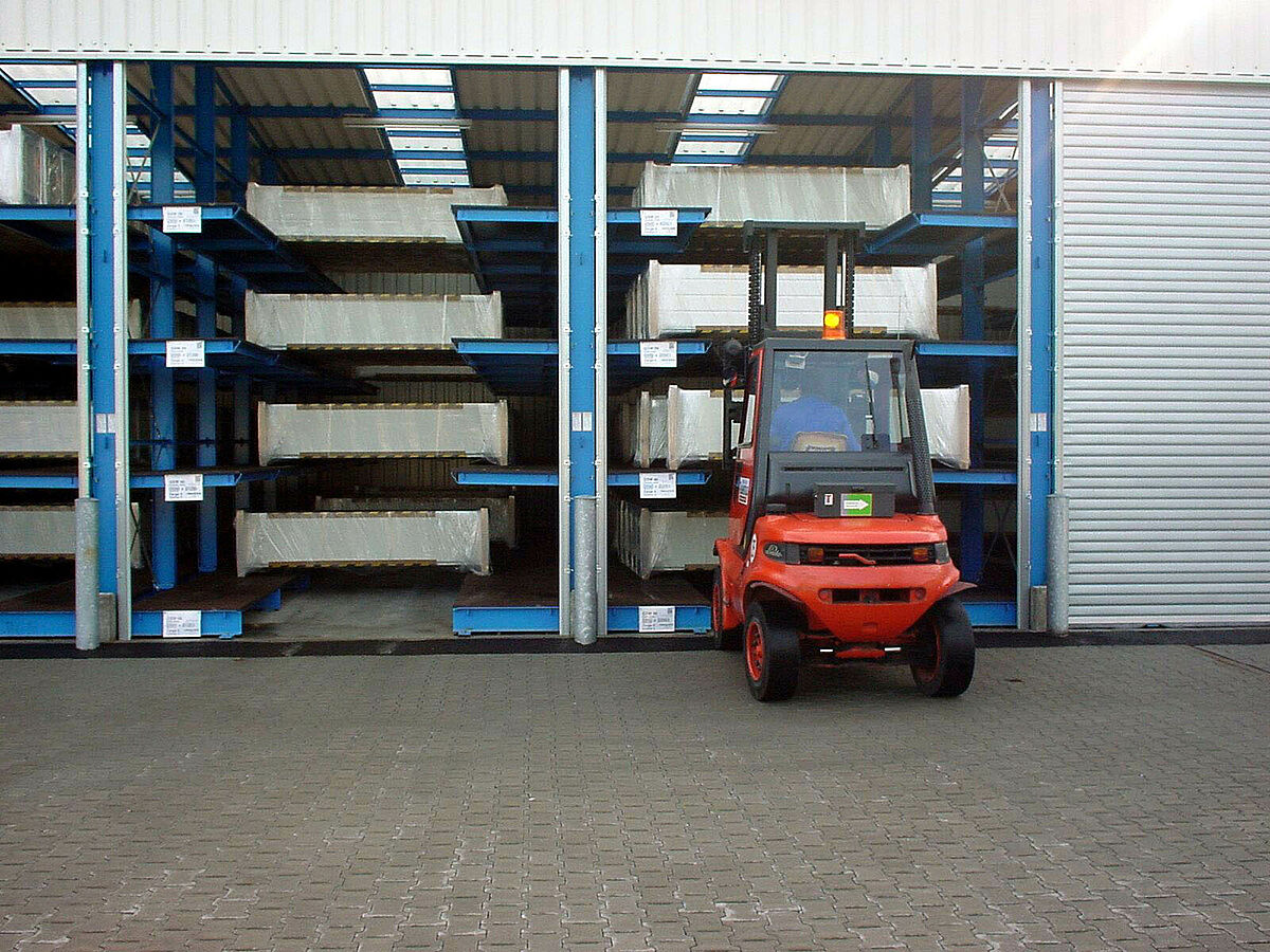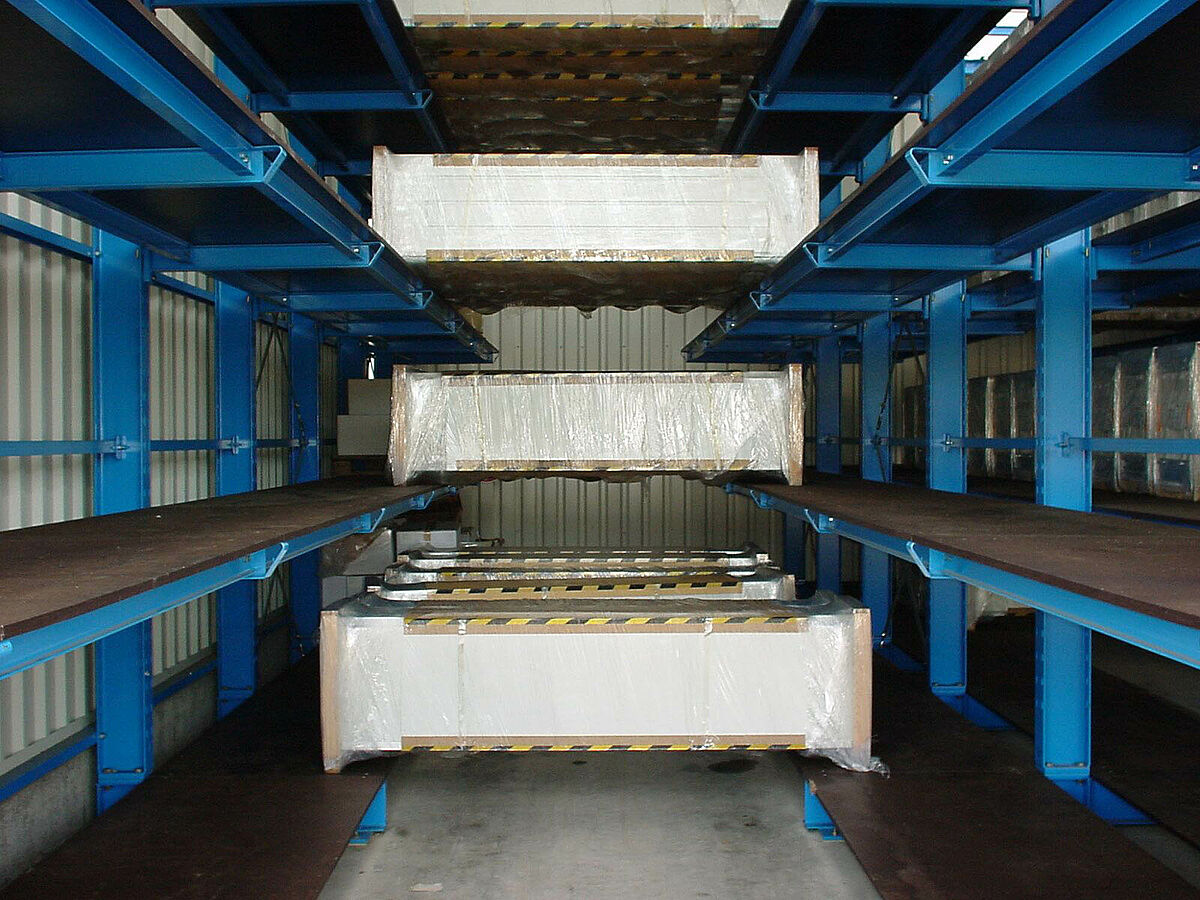 A jelentős eladási sikerek miatt szükségessé vált a készáru raktár bővítése, amelynek során a kis szériák tárolásának különös követelményeit is figyelembe kellett venni. Tervezést érintő megbeszélések egész sora után a karos állványok alapján egy újszerű befogadó állványrendszer került megtervezésre, amely lehetővé teszi a 4,2 m-től 6,5 m-ig terjedő nagyságú kapuk tárolását.