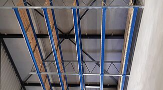 A keskenyfolyosós raktárkialakítás nagy helykihasználást tesz lehetővé, míg az állványlábakra szerelt vezetősínek megkönnyítik a targoncák manőverezését a folyosókon. A tömör falú, melegen hengerelt acélprofilokból készült, nagy teherbírású szerkezetnek köszönhetően az állványok a helyiség magasságát is teljesen kihasználják: a raklapos állványok 6600 milliméter, a karos állványok pedig 6080 milliméter magasak.